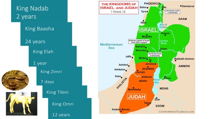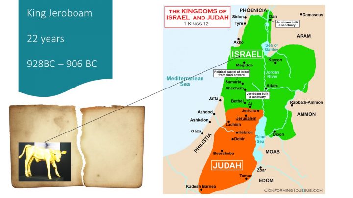 His brother took over control of Israel, the northern kingdom. One of the things he became famous for was creating 2 golden calves. This story will focus just on the kingdom of the North, Israel.