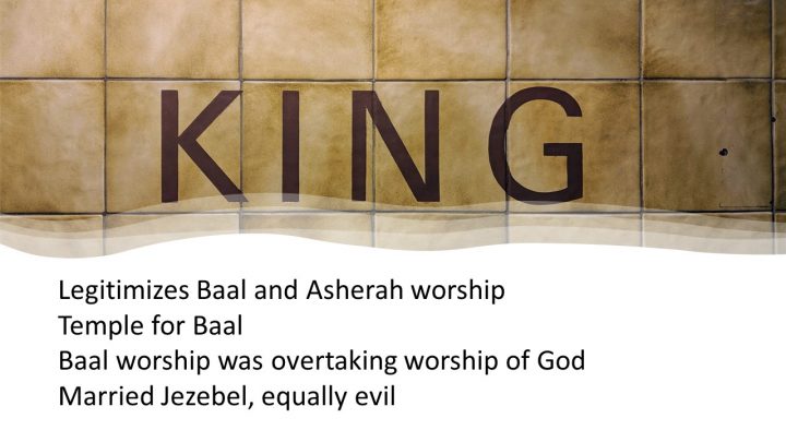 Then King Ahab comes to reign. He was particularly cruel especially in his treatment of the worshippers of God.