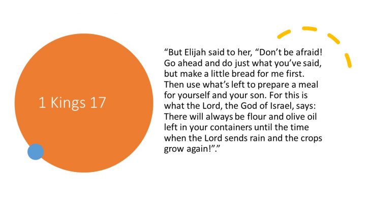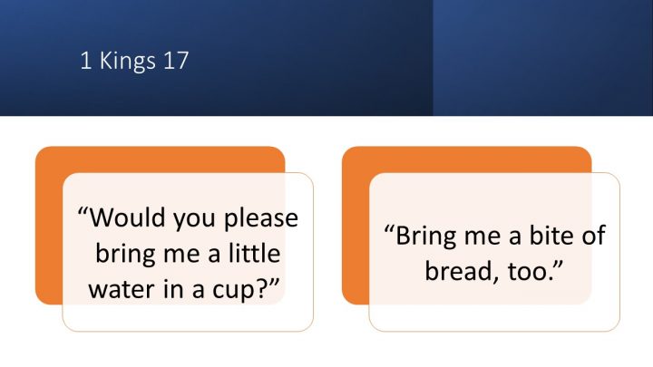 We may not have a miracle like Elijah experienced in the time of trouble that was happening during King Ahab’s reign. We can still show sincere compassion like Elijah showed, seeking God’s guidance.