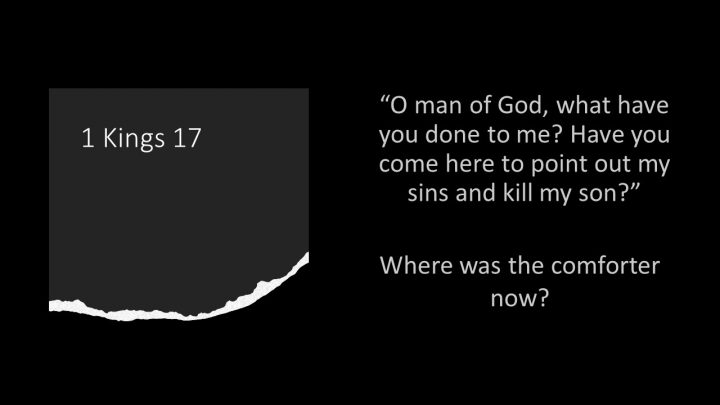 Who was the conforter? For the widow it was Elijah. For Elijah it was God.